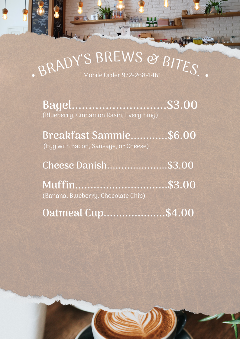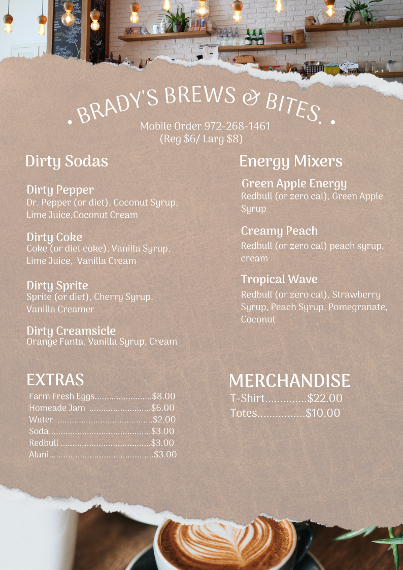 At Brady's Coffee Co., we believe that life is too short for bad coffee-and even shorter without faith, family and a little bit of froth.